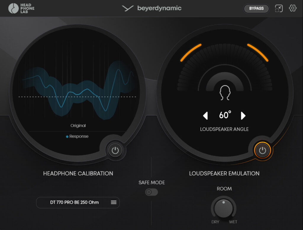ラウドネススピーカーエミュレーション機能は「高価な室内音響設備がなくてもスピーカーシステムを備えたスタジオのサウンドを「beyerdynamic ヘッドフォンに直接届ける」というコンセプトの下に構成された機能です。